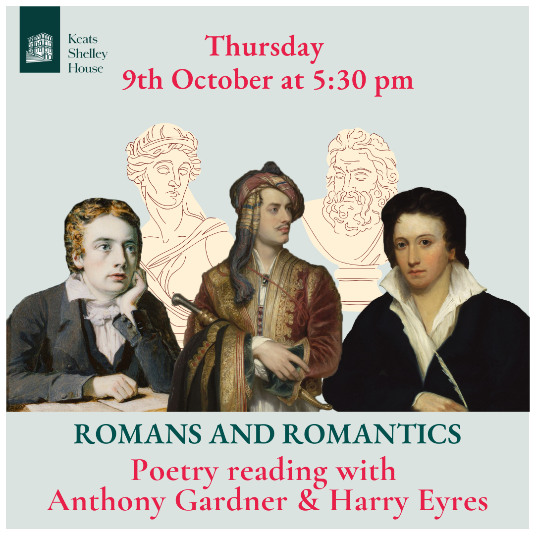 Harry Eyres and Anthony Gardner are London-based poets who have previously given joint readings at Keats House in Hampstead and in Wordsworth’s Lake District. Eyres will be sharing his translations from Catullus and Horace, while Gardner will read poems that share scenes and themes with Keats, Shelley and Wordsworth.